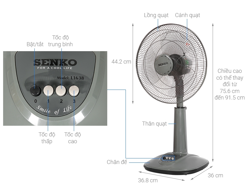 ✅ THÔNG SỐ SẢN PHẨM QUẠT ĐIỆN Senko L1638 : -